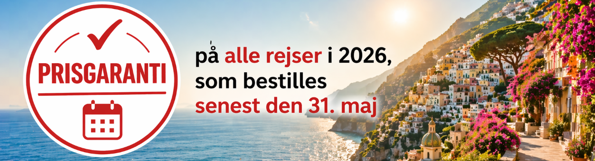 Din danske rejseleder er med hele ugen, så du får oplevet de bedste ting rejsemålet har at byde på. Hotel, måltider og udflugter er arrangeret og betalt på forhånd, og tingene foregår i et behageligt tempo. Derfor kan du koncentrere dig om at nyde ferien.