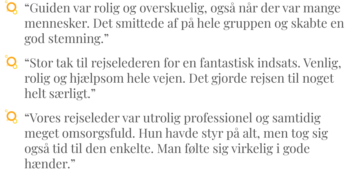 Når jeg udvælger rejseledere har jeg særligt 4 kriterier, som jeg lægger vægt på:
