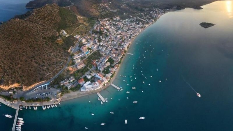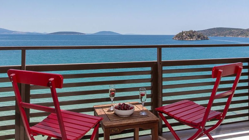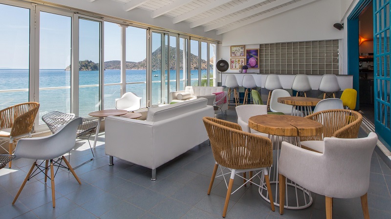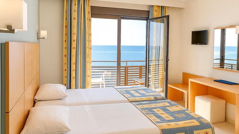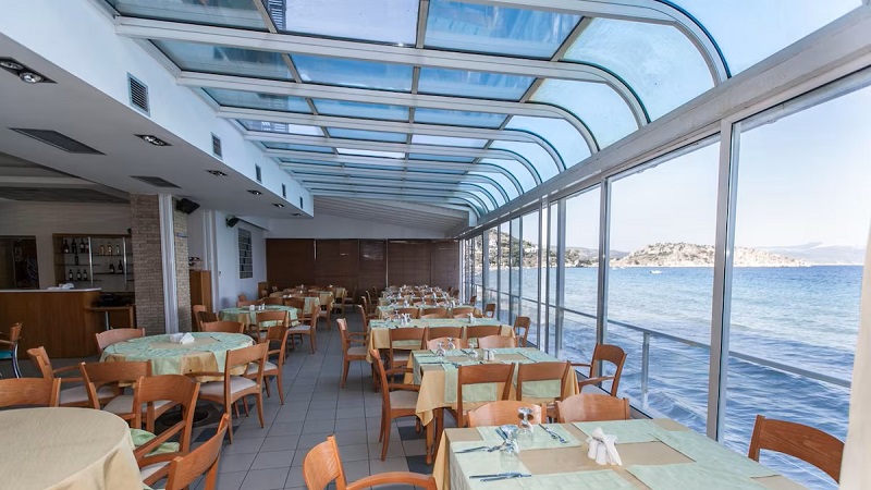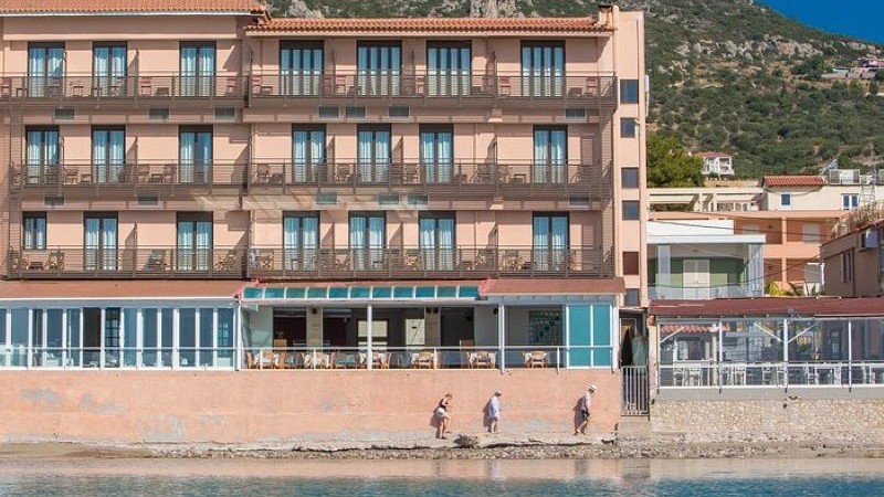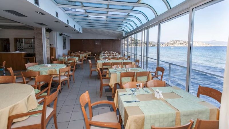 Havets bølger når helt ind til hotellet, så du kan gå lige ud i det. Byen ligger omfavnet af bakkedrag, og i den smukke bugt er en lang sandstrand. Byen selv byder på butikker, tavernaer og cafeer, og den ligger samtidig perfekt for udflugter.
